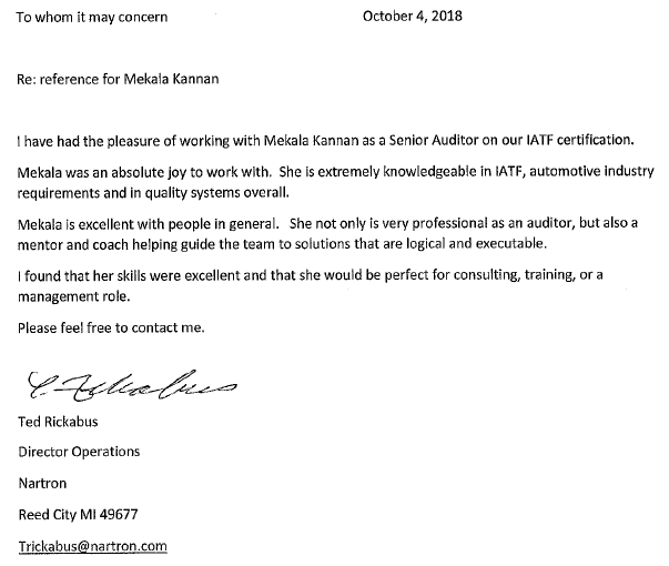 Audit Feedback report following IATF certification audit by Mekala: